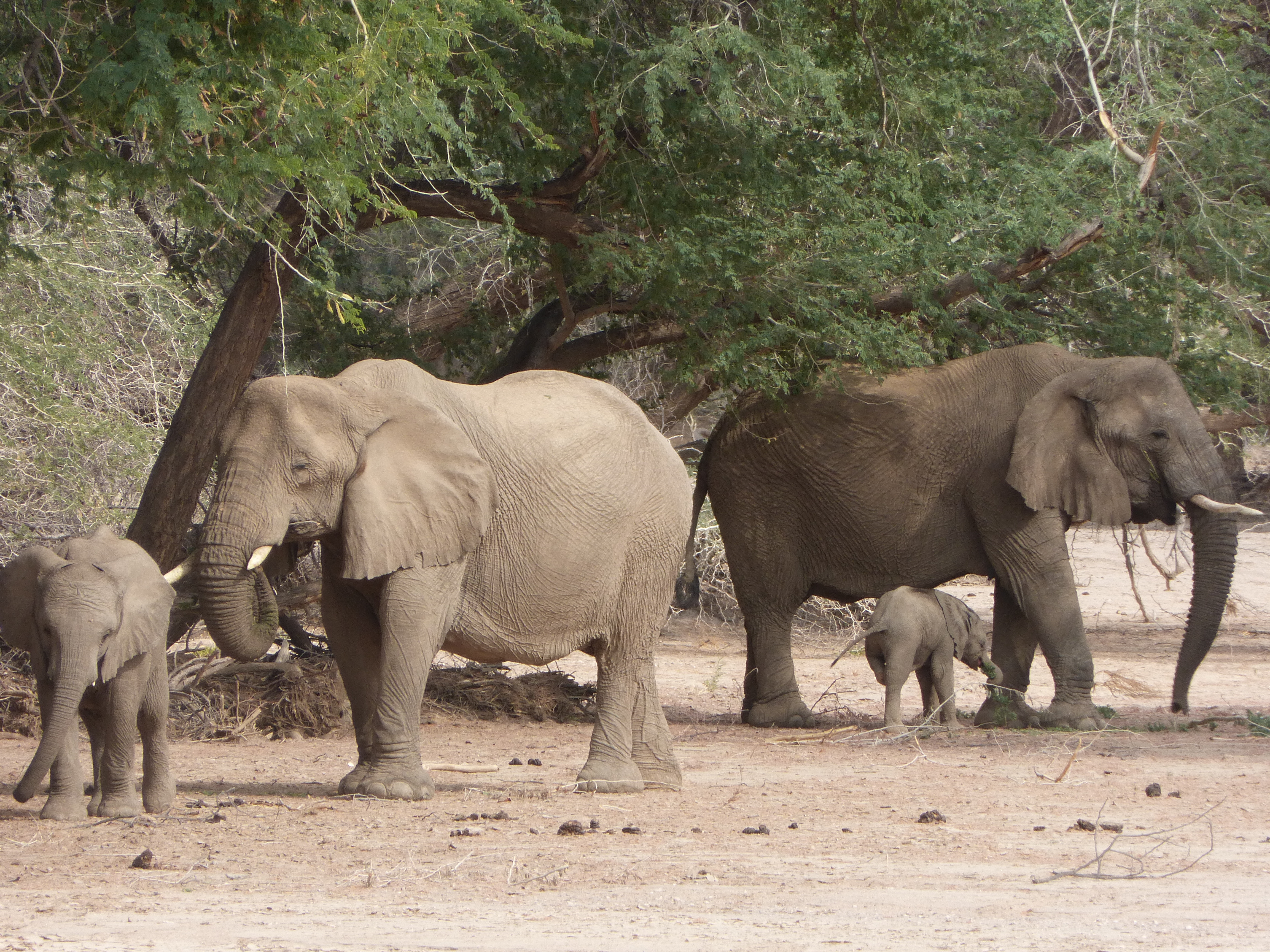 Week 2 is safari week. The team camps in a different spot each night, tracking the elephants from a respectful distance and observing their behavior. Desert elephants are the same species as their Serengeti cousins, but they’re adapted to surviving on less water. They’re smaller, with proportionally longer legs and larger feet, and their family units are smaller than average.