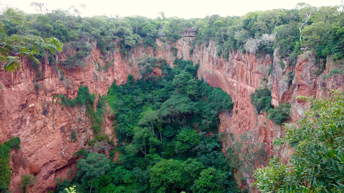 “The largest sinkhole in South America” sounds impressive, but don't let it intimidate you. Bigger than a football field and as deep as a 30-story building is high, Macaw's Hole is lined with red sandstone walls and named for the dozens of red and green macaws who nest in the crevices. Arrive at sunrise to watch these brilliantly colored birds fly off to forage or come just before sunset to see them gather in the treetops. At the bottom of the sinkhole await the caiman – South American alligators – eager for any unfortunate creatures that topple over the edge. Don't get too close!