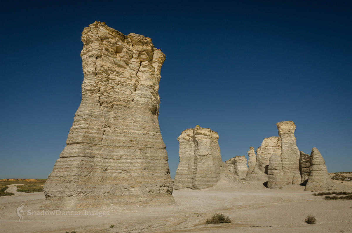 During the Late Cretaceous period, dinosaurs and other prehistoric creatures roamed along the shores of the Kansan sea, making a home near the water. Predators and prey formed their own circle of life, while tiny algae acted as the glue of the ecosystem, photosynthesizing food into energy. As a result, their calcium coating was regularly shed, sinking to the bottom to create a sedimentary layer on the sea floor. Over time, this grew to be hundreds of feet thick, encapsulating the remains of prehistoric fish, plesiosaurs, and plants into fossils. Once the Earth's plates shifted, this sedimentary layer became known as Niobrara Chalk. Through millions of years of glaciers, weathering, and erosion, this layer began to form the spire and towering shapes we see today.